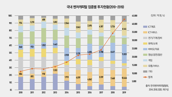 이러한 투자는 벤처캐피탈이 주로 담당해왔다. 제약·바이오 분야의 성장과 함께 벤처캐피탈의 올림푸스 슬롯사이트 투자는 지속적으로 증가해왔는데 2019년 신규 투자 금액이 11,000억원을 넘었다. 이는 2018년대비 약 31% 증가된 수치다.